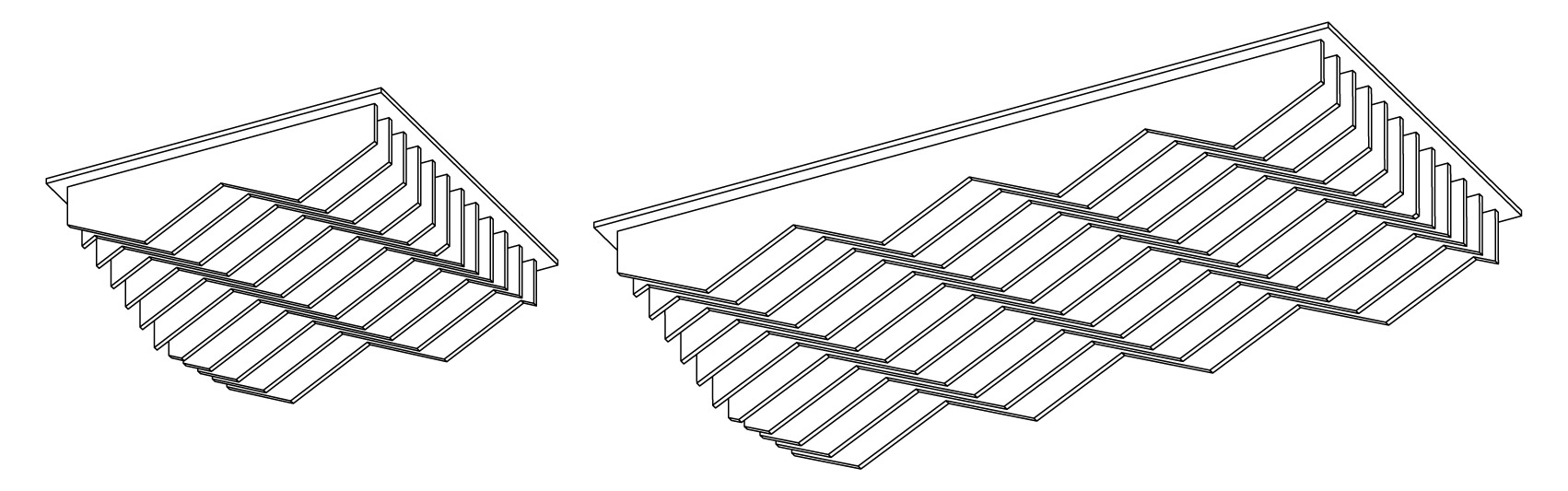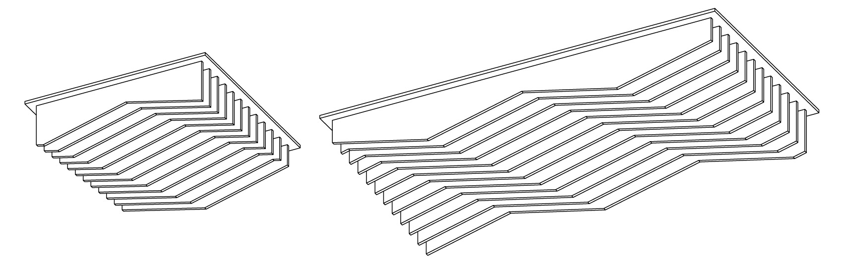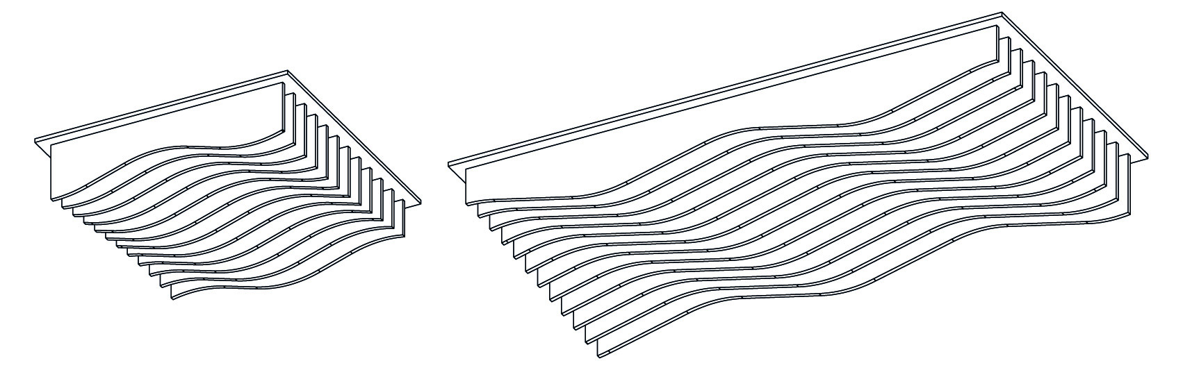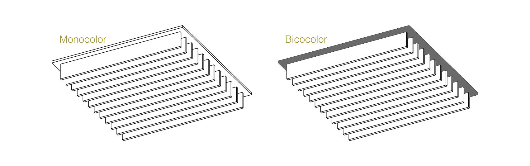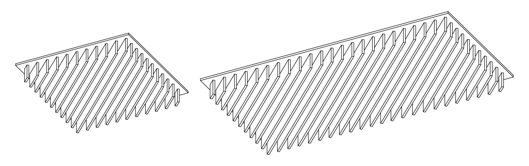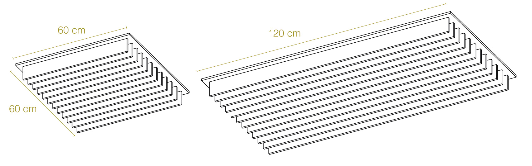 Disponible en dos tamaños (60x60cm y 120x60cm), con seis patrones diferentes por formato. Diseñado para sustituir placas de yeso en falsos techos estándar.