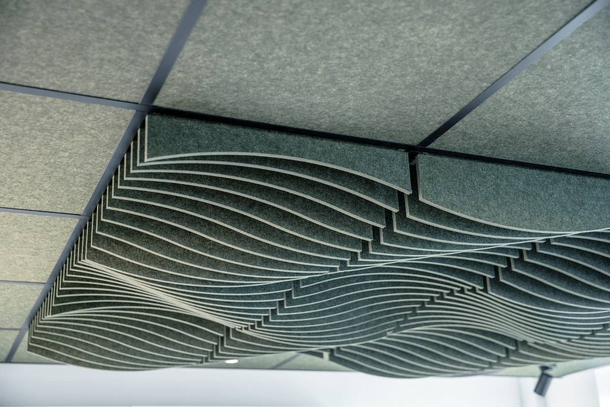 Cella 3D es un sistema de techo modular acústico con volumen.